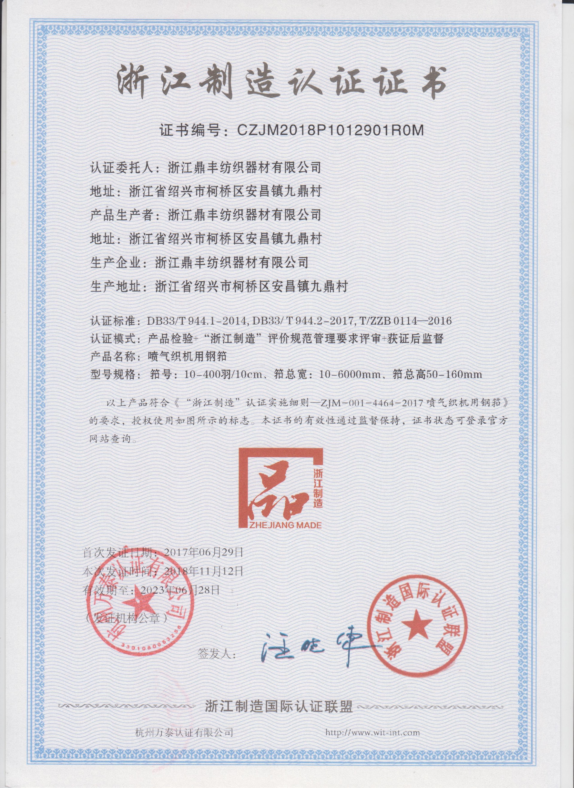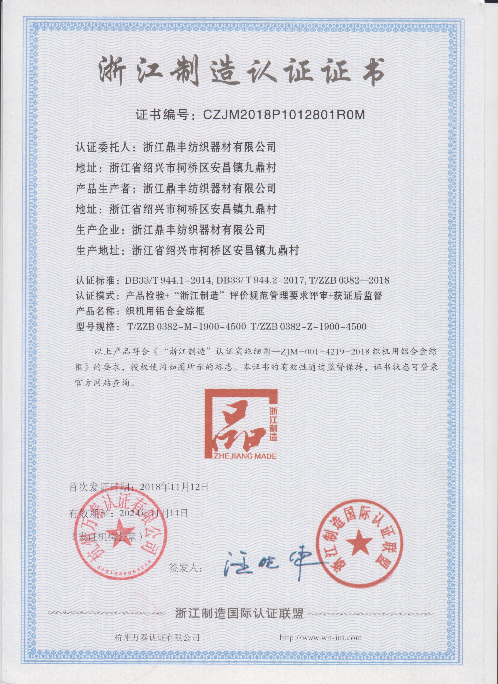 浙江鼎豐紡織器材有限公司始建于1986年,是一家專業(yè)生產(chǎn)各類無梭織機(jī)用鋼筘:噴氣筘、噴水筘、劍桿筘、其他類型鋼筘;鋁合金綜框、鋼片綜、停經(jīng)片、經(jīng)軸、織軸、卷布輥等產(chǎn)品及配件的民營(yíng)企業(yè)。